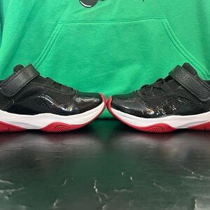 Stylish and comfortable kids sneakers in black and red. Perfect for active play and everyday wear. With velcro straps and elastic on the insides. No tying shoelaces… pre-loved. Good condition.
