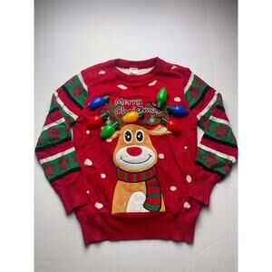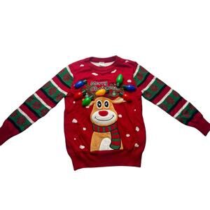 Kids LED Light Up Red Christmas Sweater Reindeer size 9/10