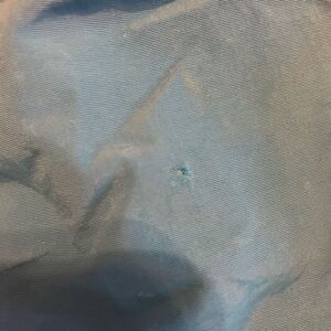 Lots of life left in this snowsuit. Great for an extra set to play out in. A few spots that I haven’t tried treating yet and a little fading on bum and knees and a tiny rip on leg ( see pictures) the knees and bum are iron knee. Made tough. size 6/7