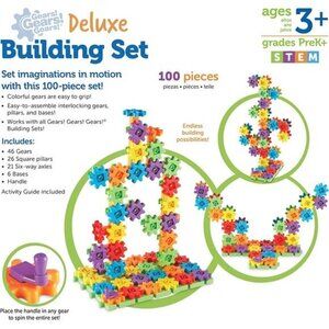 🧿This versatile, interconnecting gear set is different every time you build to foster imagination and offer ways to experiment with simple mechanics and science; supports STEM by introducing children to sorting, grouping, counting, designing, constructing, and putting physics into play with spinning gear movement.100-PIECE GEARS SET: This deluxe set includes 46 Colorful gears (blue, green, orange, red, purple), 26 square pillars, 21 six-way axles, 6 interlocking bases, 1 crank handle.