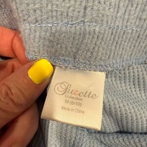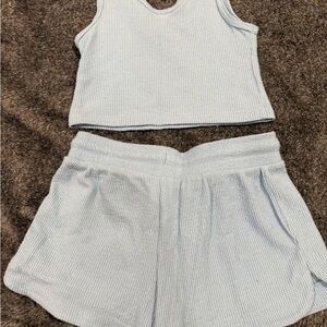 This adorable light blue ribbed matching set is perfect for your little one. The soft fabric ensures comfort and style for any occasion.