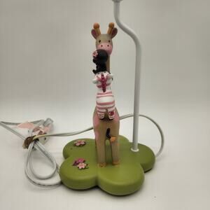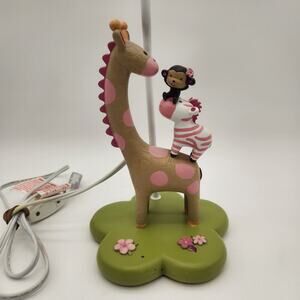 Kids Line Safari Theme Table Lamp Giraffe Monkey Pink Hippo Pink & Green Nursery