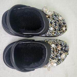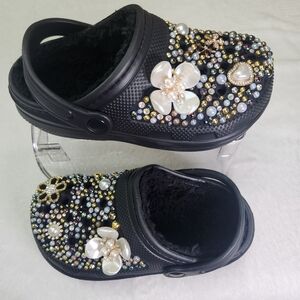 Stylish kids' clogs adorned with colorful jewels. Perfect for adding sparkle to any outfit.