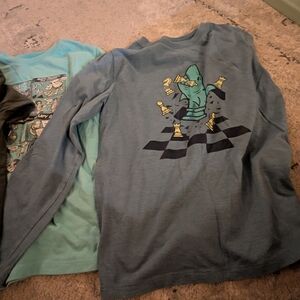 These fun and vibrant long sleeve tees are perfect for kids. Featuring playful graphics, they come in black, light blue, and blue colors. Ideal for everyday adventures.