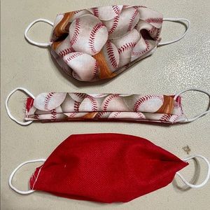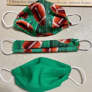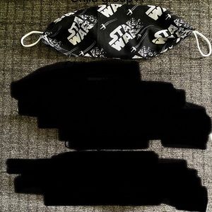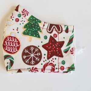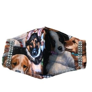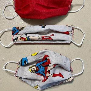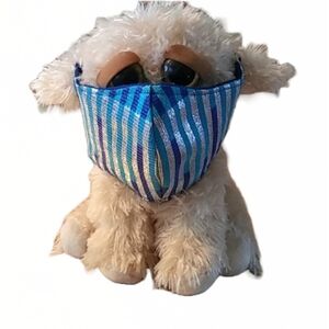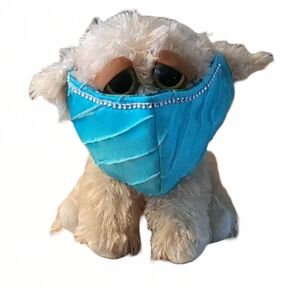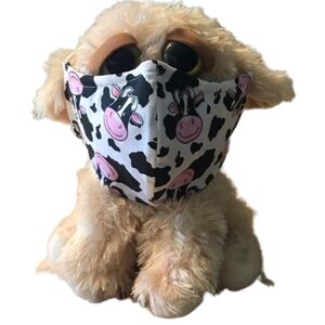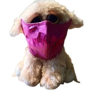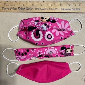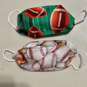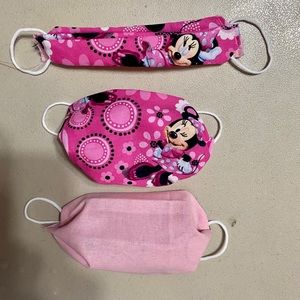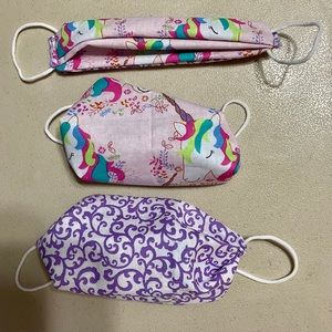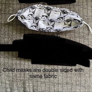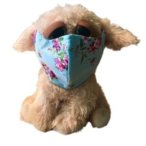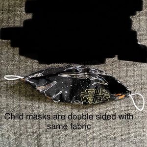 This dark blue kids mask is handmade by me. With cat fairies and yellow puffs. The elastic is soft round elastic.