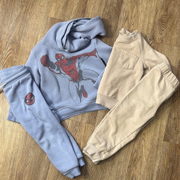 Cozy Marvel set featuring Spider-Man. Tan 90 Degrees matching set. Both do have some wash wear