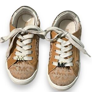 Kids Michael Kors Casual Court Sneakers MK Logo Canvas Low Top Lace Up Size 12