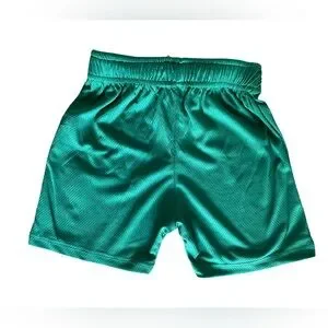 • Green textured athletic shorts with elastic waistband and interior drawstring
