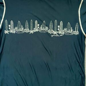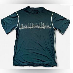 Navy blue (bluer than in picture) Speedo rash guard, swim shirt, sun shirt. Unisex, boys or girls with a cute surfboard design on the front. With UV protection fabric, this gives your kiddo some protection from sunburns and sand at the beach or swimming pool. Condition is listed as good because it was probably bought a decade ago. Summer, beach, juniors, kids, surfing, swimming.