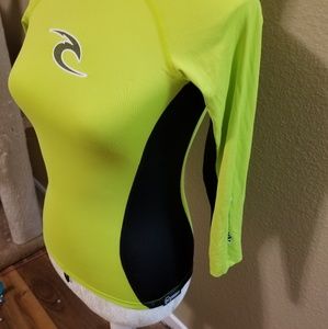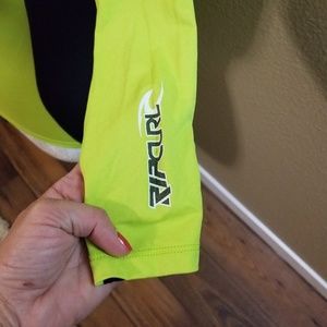 Gorgeous bright neon-green swim top! Super practical for all water activities. Popping color, form fitting. Item was never used, runs small, it is a kid size. Excellent fabric and quality by the prestigious brand Rip Curl. 50+ UV protection