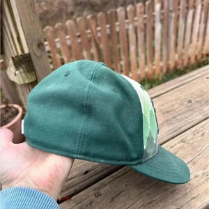 Green baseball cap non-adjustable after school cool street preppy fan ballgame ball cap hat child kid boy girl day style fashion fandom fans MLB major league Oakland collector