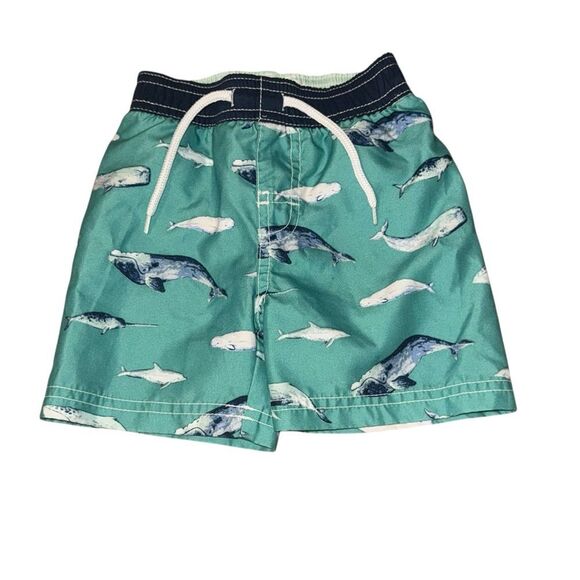 Size 12-18 Months Fun whale print swim shorts. Ideal for water adventures. Comfortable fit.
