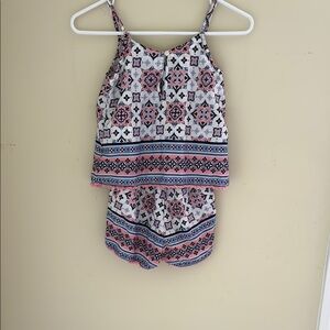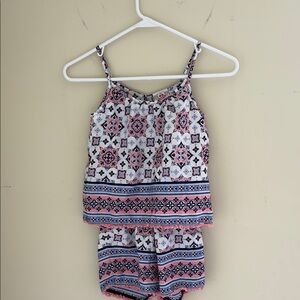 Adorable kids one piece romper featuring a vibrant pattern. Perfect for playful days. Sleeveless. In perfectly condition