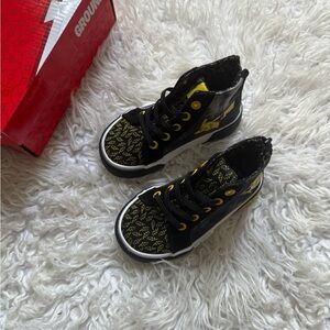 Let your child step out in style with these Pikachu high-top sneakers. Featuring a striking black and yellow design, these shoes are perfect for any young Pokémon fan. Comfortable and durable, they're ideal for everyday adventures.