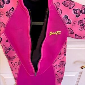 Make a splash with the Kids Wetsuit. This vibrant pink suit features a delightful butterfly design, perfect for fun-filled days in the water.