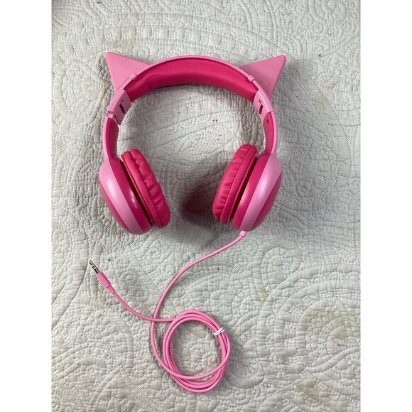 Kids Pink Cat Ear Wired Headphones* Gorsun Adj Headband Soft Cushions 3.5mm Jack