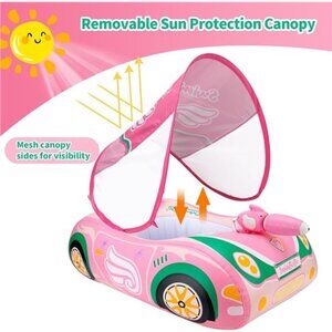 🧿【Attractive shape】Cool Car boat pool float will introduce your baby to the joys of water, Suitable for children 3+ years old,Removable/adjustable canopy features a multi-position plastic hinge, which allows for 120-degree range and UPF 50 sun protection.