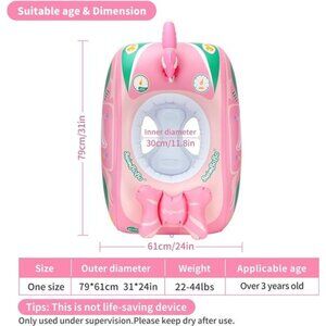 Kids Pink Toddler Pool Float Inflatable Car Baby Swim Float for Baby Girls
