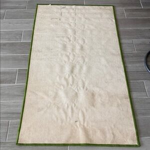 This colorful kids play rug features roads and buildings, perfect for imaginative play. The vibrant green and gray design adds fun to any playroom. There is a snag (see picture) some staining on back (see picture) but overall gently used. Approx 59inx31in