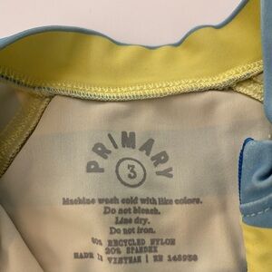 Keep your child protected and stylish with this striped rashguard Bathing Suit.Featuring a vibrant blue and yellow design, it's perfect for sunny days at the beach or pool. Comfortable and durable, this is a great choice for active kids.