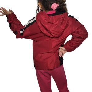 Kids Protection System Jacket, designed to safeguard your child in any weather conditions. This unisex red jacket comes with a hood and pockets, providing utmost convenience. Not only does it protect against rain, wind, snow, and sun, but it also offers a trendy and vibrant look. You can wear it under a puffer jacket or just by itself. Rest assured that your little one will be both fashion-forward and well-protected with this jacket.