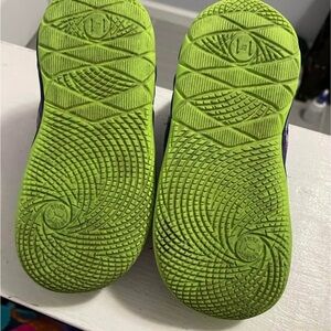 These stylish kids' shoes feature a vibrant blue design with neon green accents, perfect for adding a pop of color to any outfit. Comfortable and durable, they're ideal for active play.