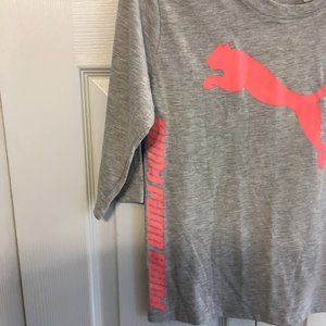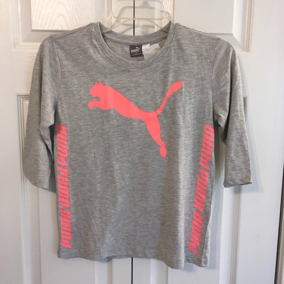 New (partial tag, see last photo) kids Puma shirt, nice gray and pink colors. Soft jersey material, Great condition