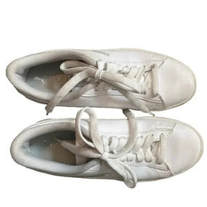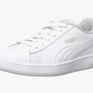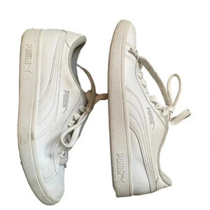 Kids Puma Smash V2 gently used white leather tie up sneaker Size 4
