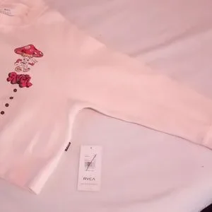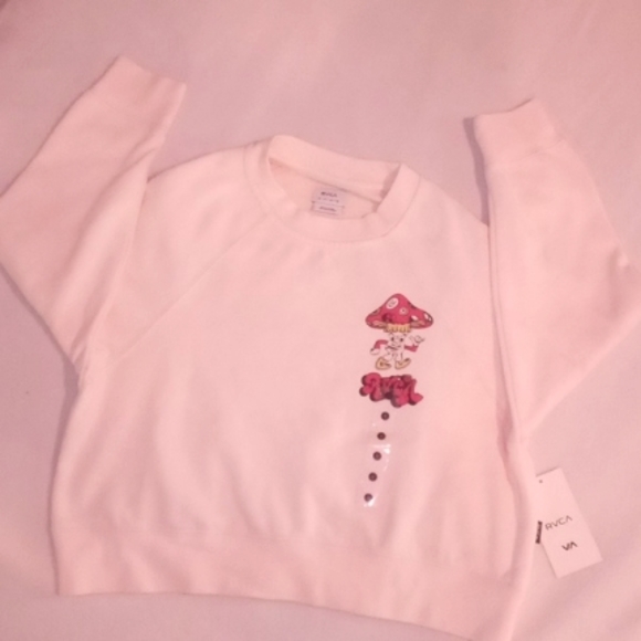 kids size 10 medium light sweater Never been used brand new tag is still attached like creamy color with a little mushroom character on the left hand side of the sweater