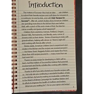 "Kids' Recipes for Success" is a hardcover book published in 1991 by Riviana Foods, Incorporated. Written in English, this juvenile nonfiction book features 124 pages of fun recipes illustrated by the author. The book is aimed at kids and focuses on cooking and food, making it an engaging and educational read for young readers. With a colorful and informative illustration style, this book is sure to inspire young chefs to explore their culinary talents and create delicious dishes. Spiral spine is undone on bottom of spine