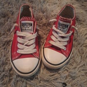 Stylish and comfortable red canvas sneakers perfect for active kids. Durable design with easy lace-up closure.