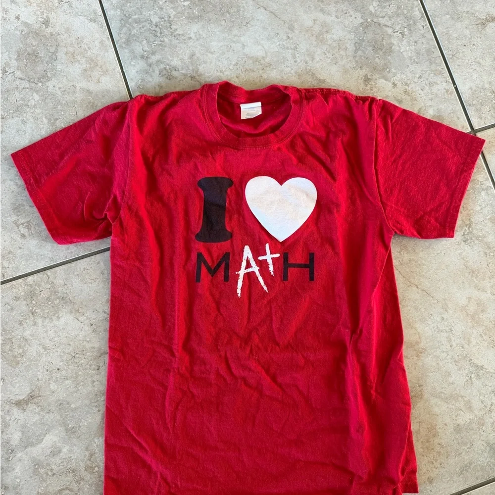 Soft red kids' tee featuring a bold "I ♥ MATH" Mathnasium shirt. Comfortable cotton feel for everyday wear. Bright red color and playful design make learning fun.