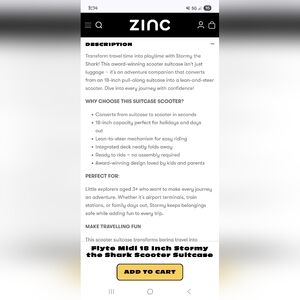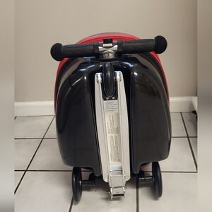 Zinc Fltye kids carry-on luggage with build in scooter. 18 Inch luggage allowed on planes. Unfold the scooter or fold it up instantly. Tons and fun for those little who don't want to walk around.