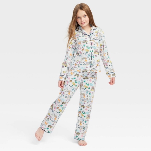 Girls' Roadtrip Long Sleeves and Pants Pajama Set Blue/Yellow/Pink