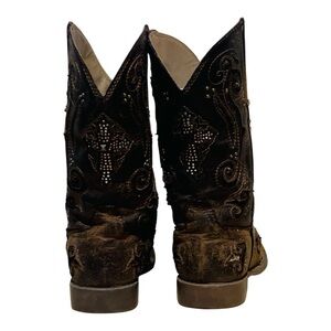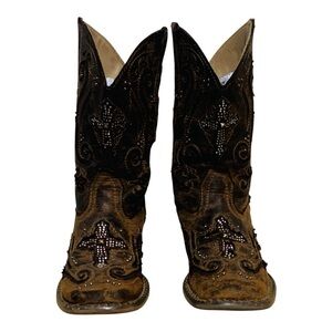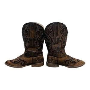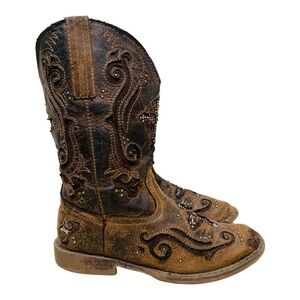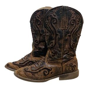 Kids Roper Brand Embroidered Leather Western Core Boots Size 1 (Little Girl)