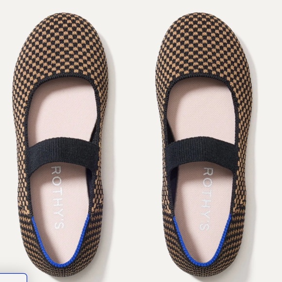 Kids Mary Jane–style Rothy's in a super cute tan/black checked pattern. They are unworn, brand new; I just got the wrong size.
