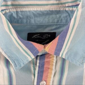 Kids NWT Long Sleeve Button Front Blue White Orange Stripe