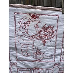 Kids Santa Christmas Throw Wall Hanging Red Work Embroidery Retro 1920s Style