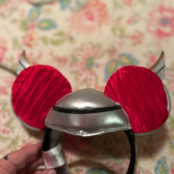 Vibrant red and silver headband for superhero adventures. Perfect for kids' playtime.
