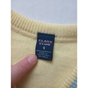 Kids Size 5 Butter yellow Blue Argyle Sweater Vest Class Club Button Front