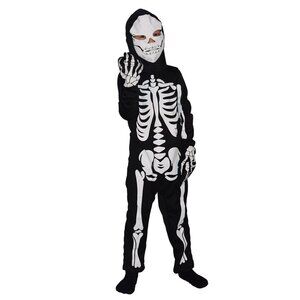 Polyester fiber onesie with a hood design—lightweight and comfortable. The cool skeleton look makes your little one the party highlight, ready to enjoy the Halloween fun!