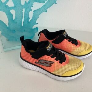 Kids Slip On Sketchers Shoes SZ 11 yellow orange and black Design With Strap NEW