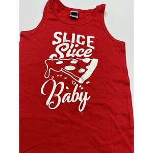 Small Shop Pizza Tank Top • red tank top with Slice Slice Baby pizza print in white • size 3t • minimal wear •
