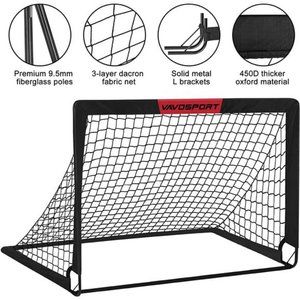 🧿【Complete & Valuable Soccer Goals Set】The VAVOSPORT Soccer Net Set is the most complete soccer set on the market. It has 2 easy-fold kids' soccer goals, 1 std size 3 soccer ball, 1 inflation pump, 6 cones, 8 U-shaped heavy-duty ground nails and 1 carrying bag. One soccer set for everything you need to develop your child into a little athlete, allowing your kids to have their "own" net to score a goal on!