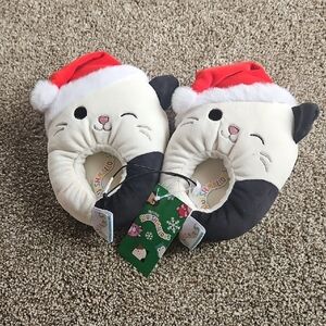 Kids Squishmallows Festive Kitten Slippers With Santa Hat