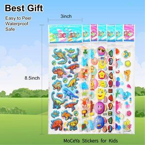 * ✨ Stickers For Toddlers : Add dimension to your scrapbooking with 40 sheets of vibrant, 3D puffy stickers from MoCeYa, totaling over 1,200 unique designs! Choose from hearts, animals, fish, cars, letters, numbers, fruit, vegetables, smiley faces, fashion dress up and more.