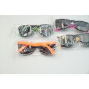 Fun and functional, this 12-pack of kids party sunglasses includes assorted neon-colored arms with classic black fronts and dark lenses. Perfect for birthday parties, goodie bags, outdoor events, and summer camps. UV-protective lenses add practical value beyond the party! Great for kids aged 5–10.