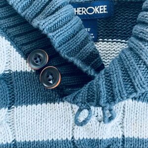 Kids Boys Sweater Pullover Shawl Collar with button detail, striped, elbow patch. Size 5T, very good condition, like new.