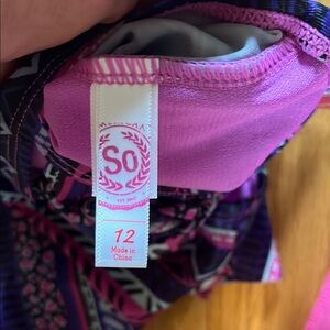 Bottoms or Cat and Jack size medium. Never worn top is SO brand with a tag labeled as a size 12, however, in my opinion runs very small like a medium. That is why I paired it with these bottoms.