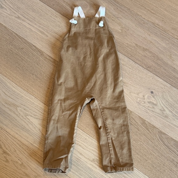 Stylish and comfortable kids' tan overalls perfect for everyday wear. Easy to pair with any top for a cute outfit. Perfect condition.